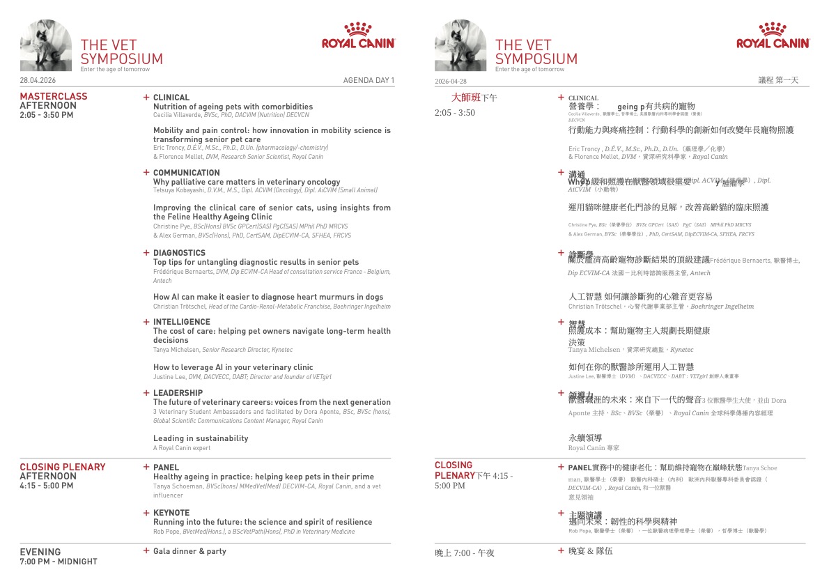 這是由 Royal Canin 法國皇家主辦的國際獸醫論壇「The Vet Symposium 2026」,